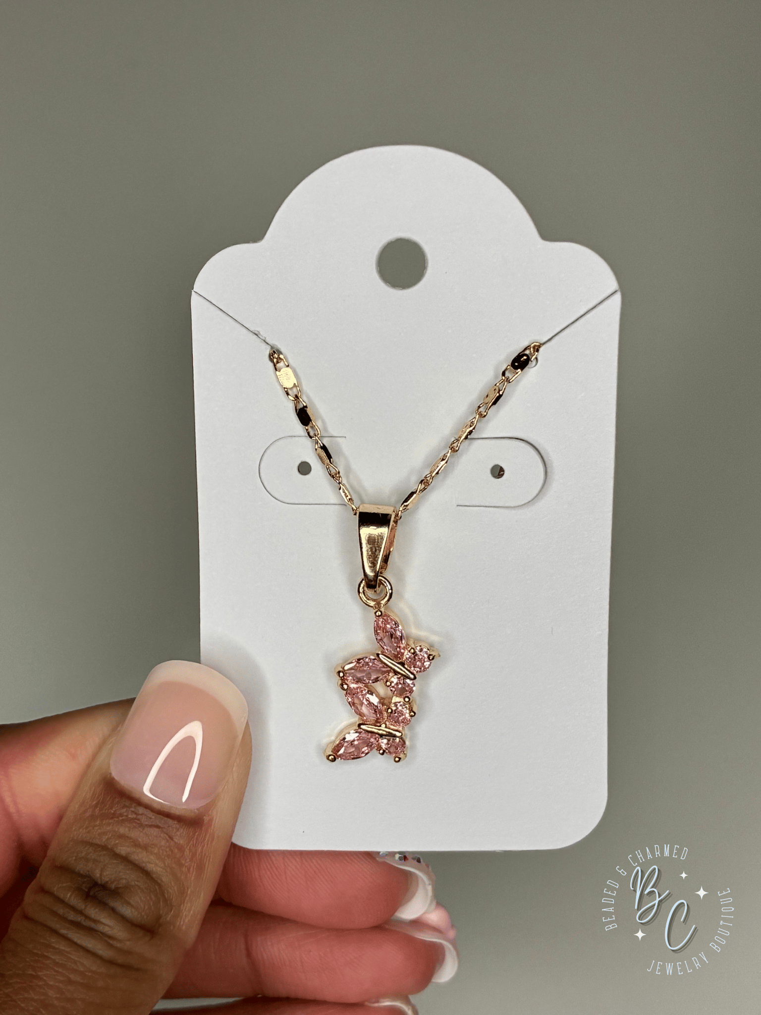 Color: Lustrous Gold With Pink Butterfly Pendant